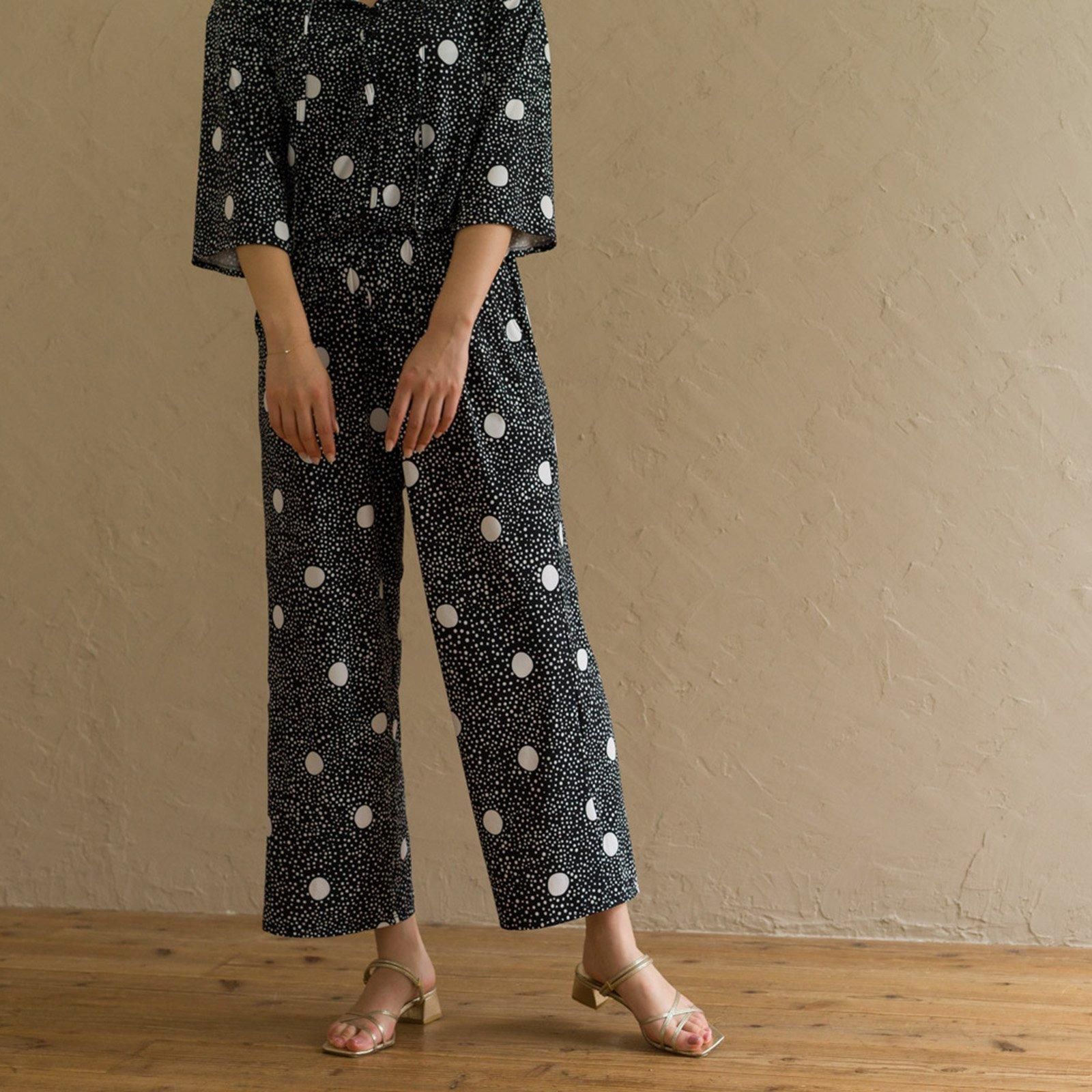 触れるたびに気持ちいい肌触り。ウェストはゴム仕様でストレスのない着心地。ストンと落ち感があるので、すっきりスタイル良く見せてくれます。