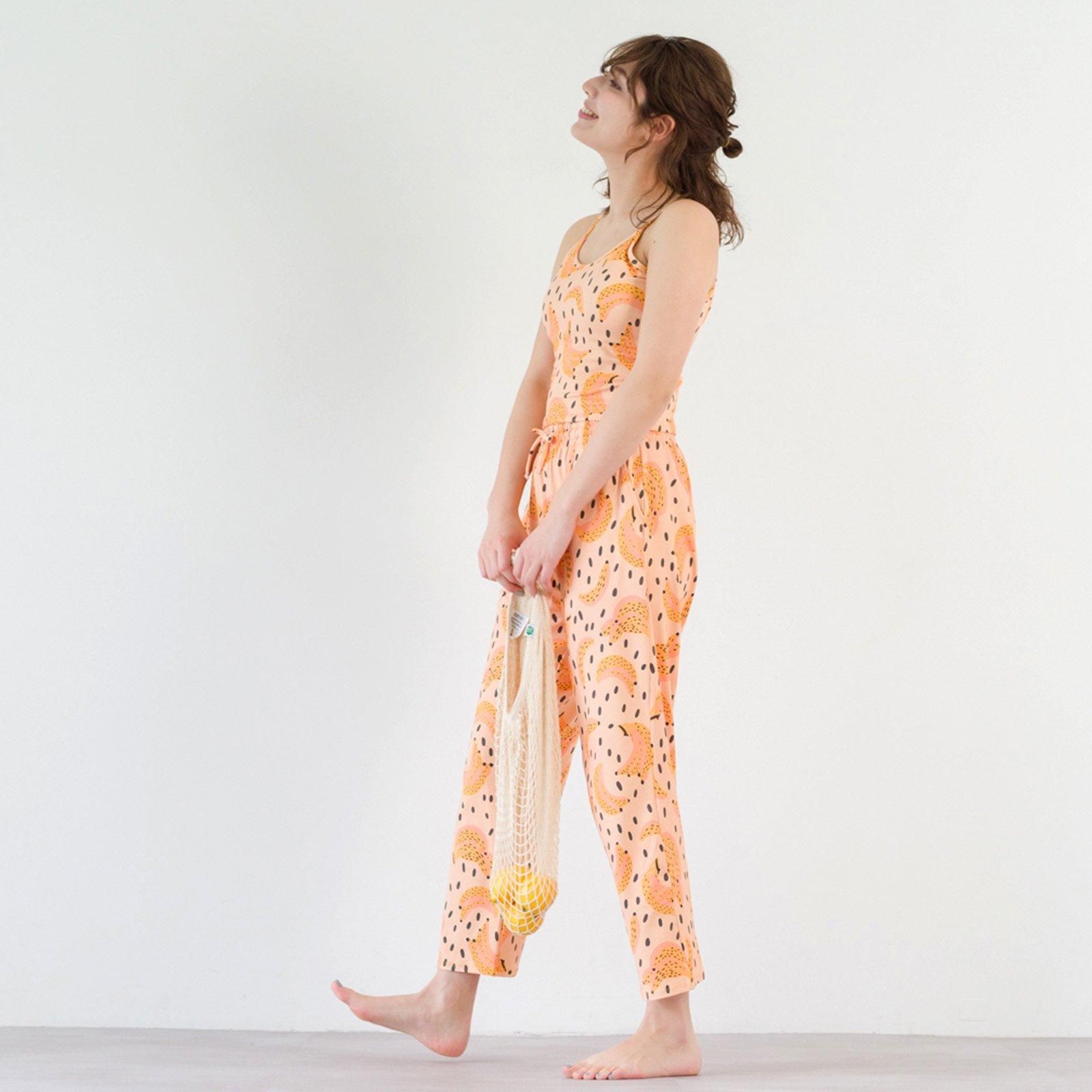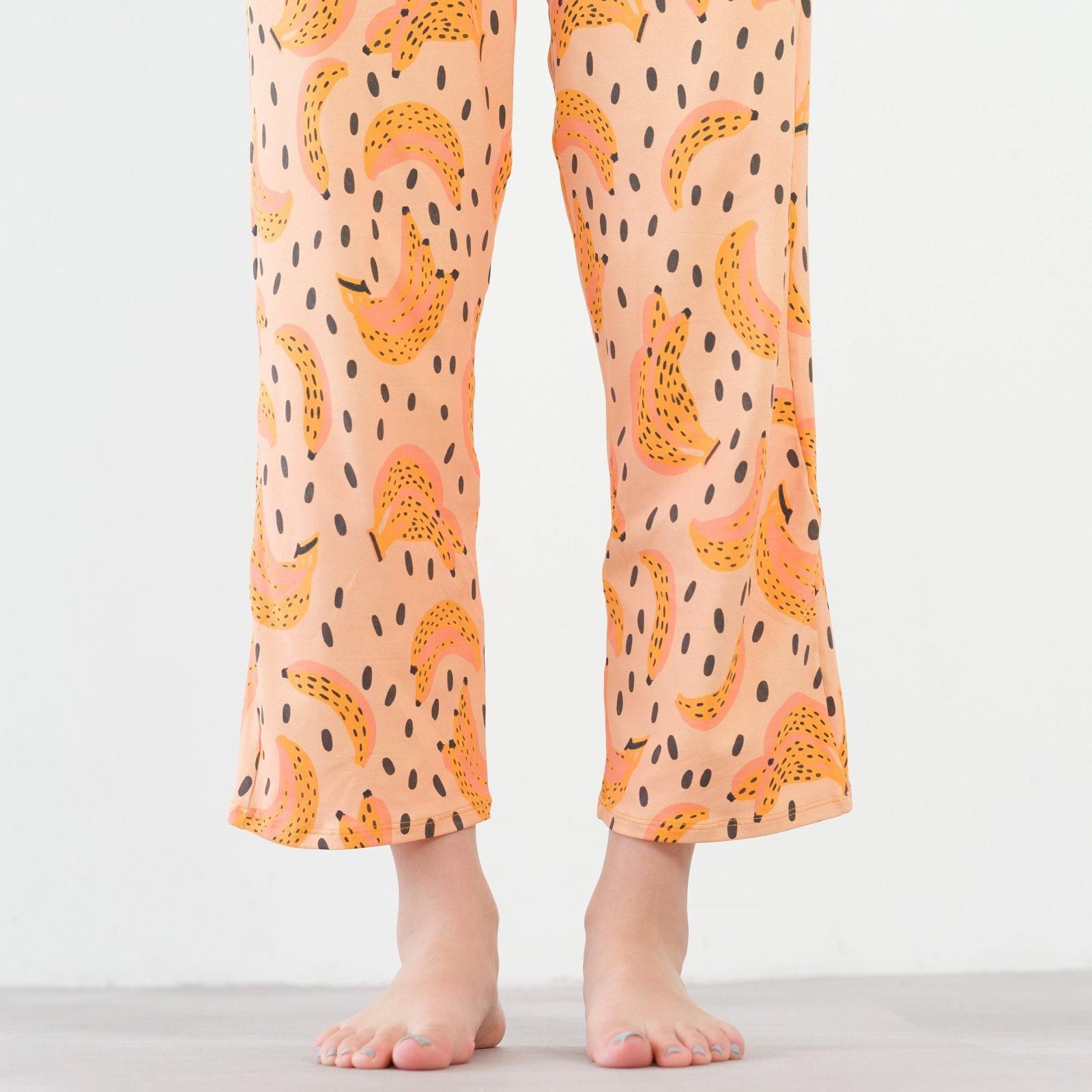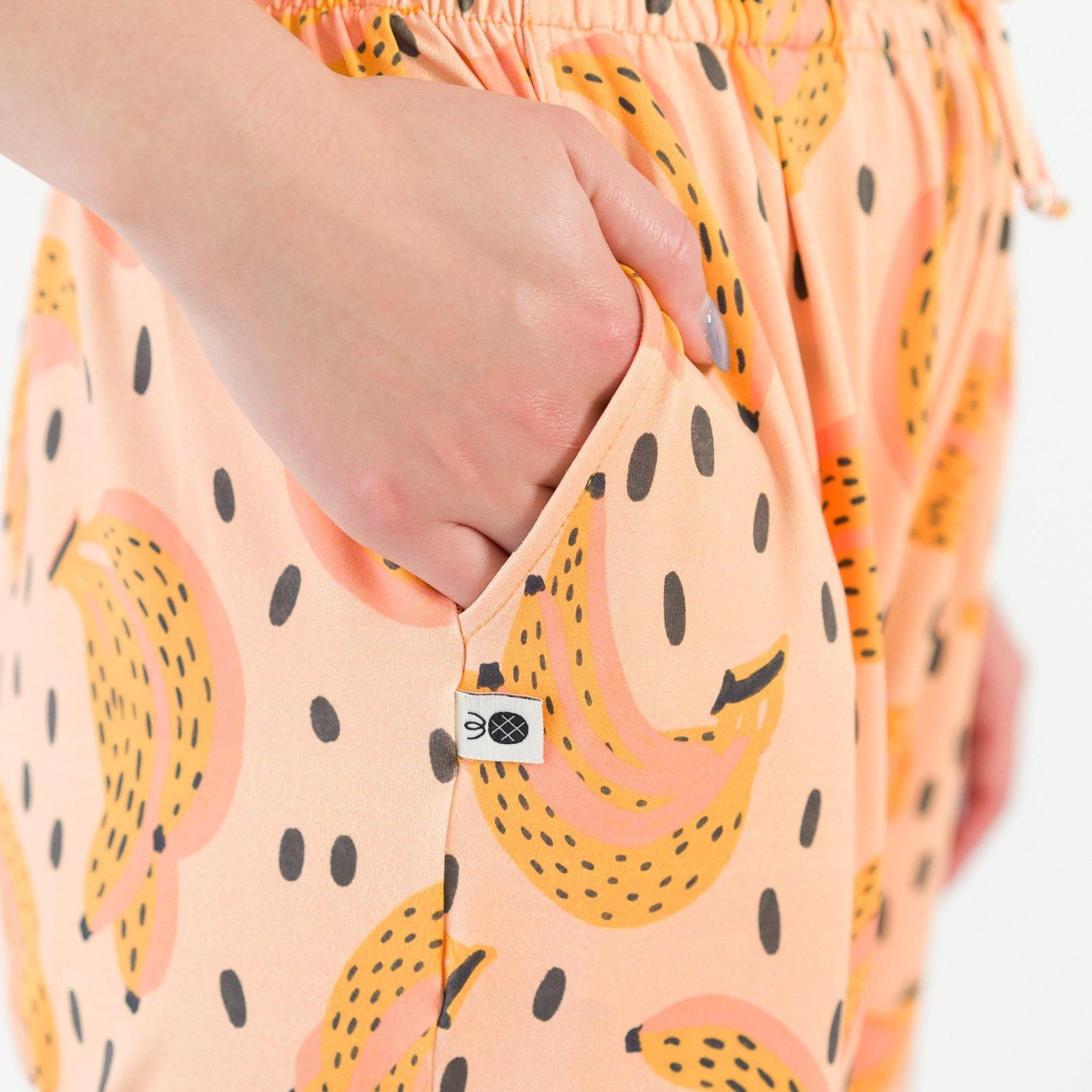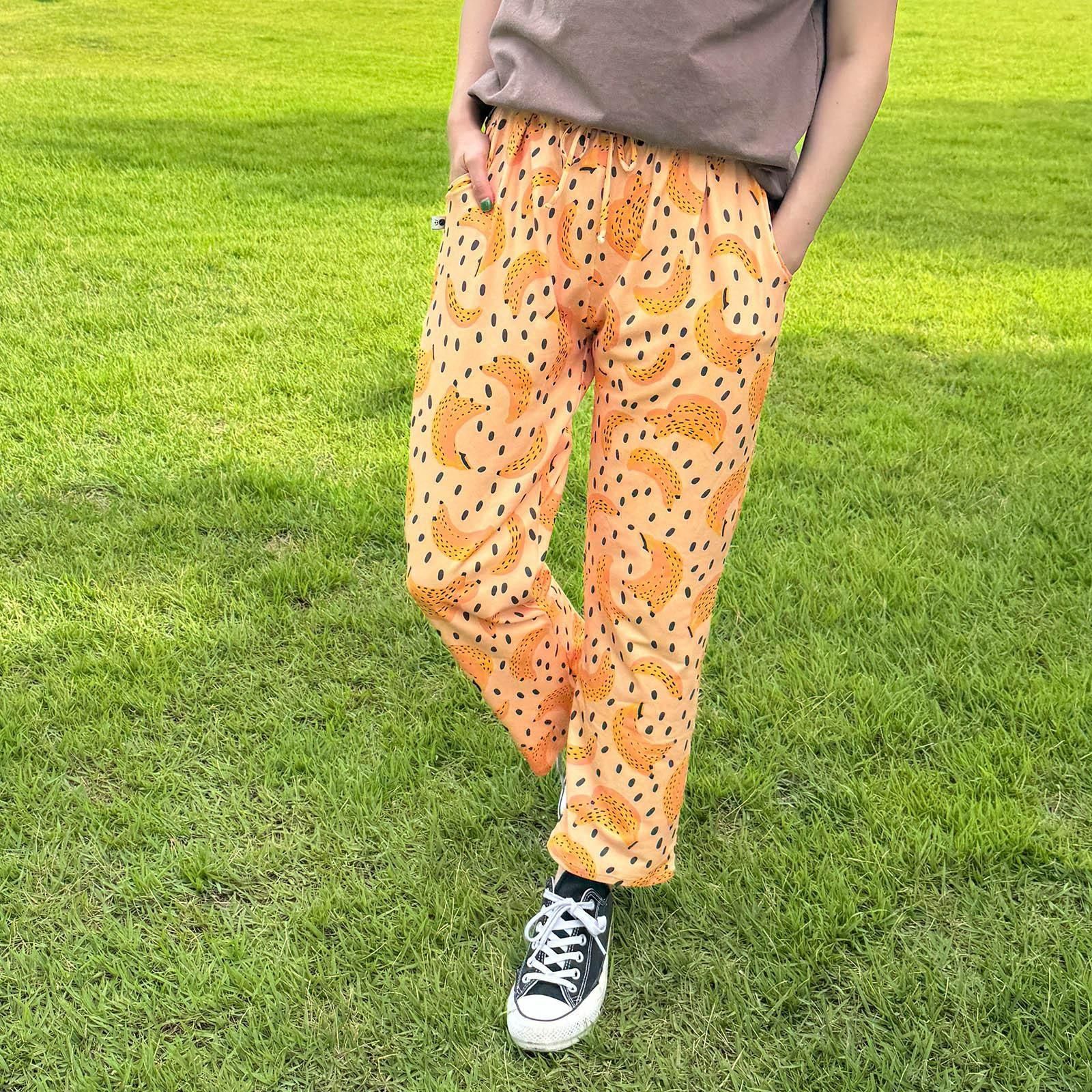 柔らかいイエローに、ゆるーいバナナ柄。落書きしたみたいな雰囲気がかわいらしくて、ご機嫌なプリント♪