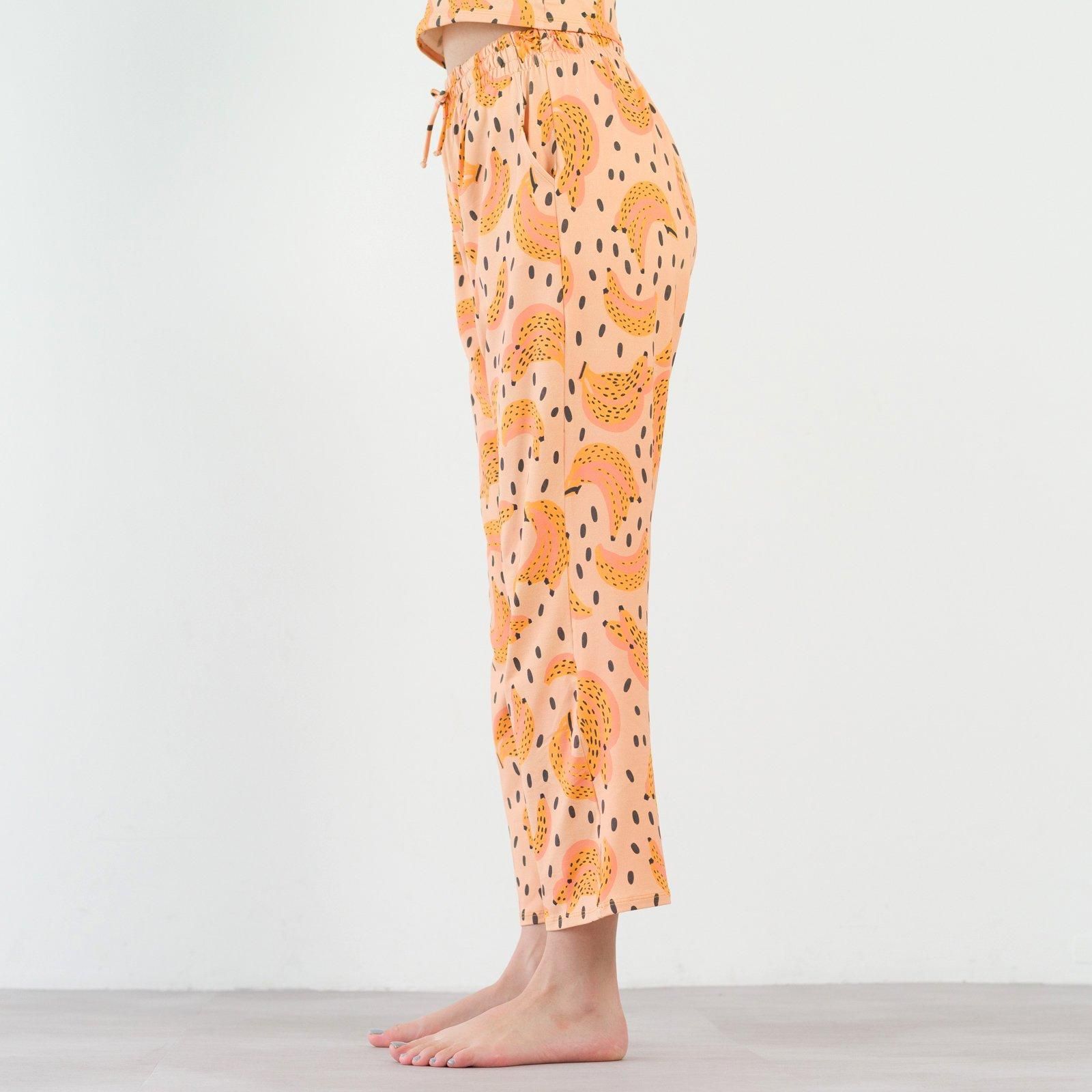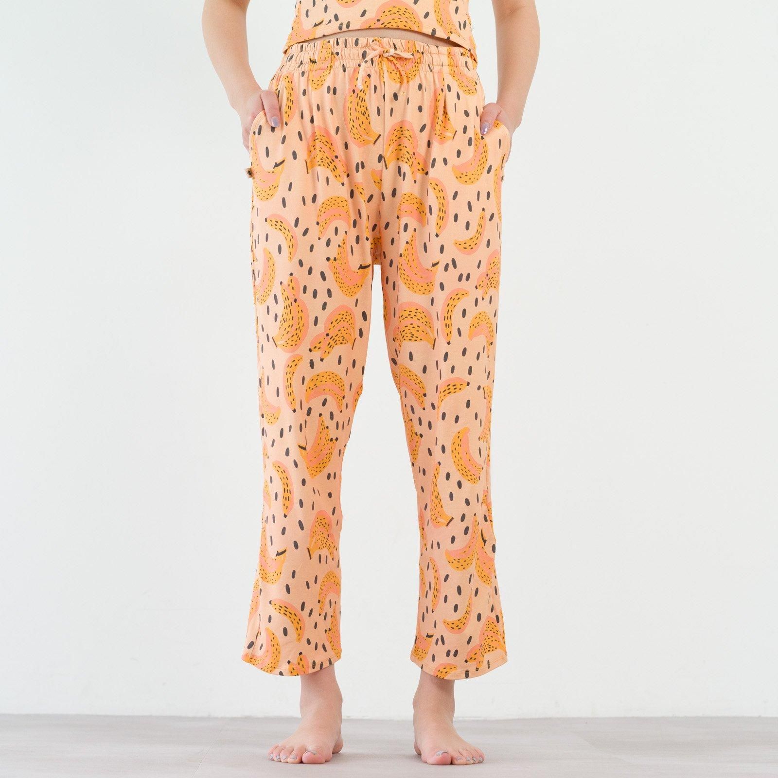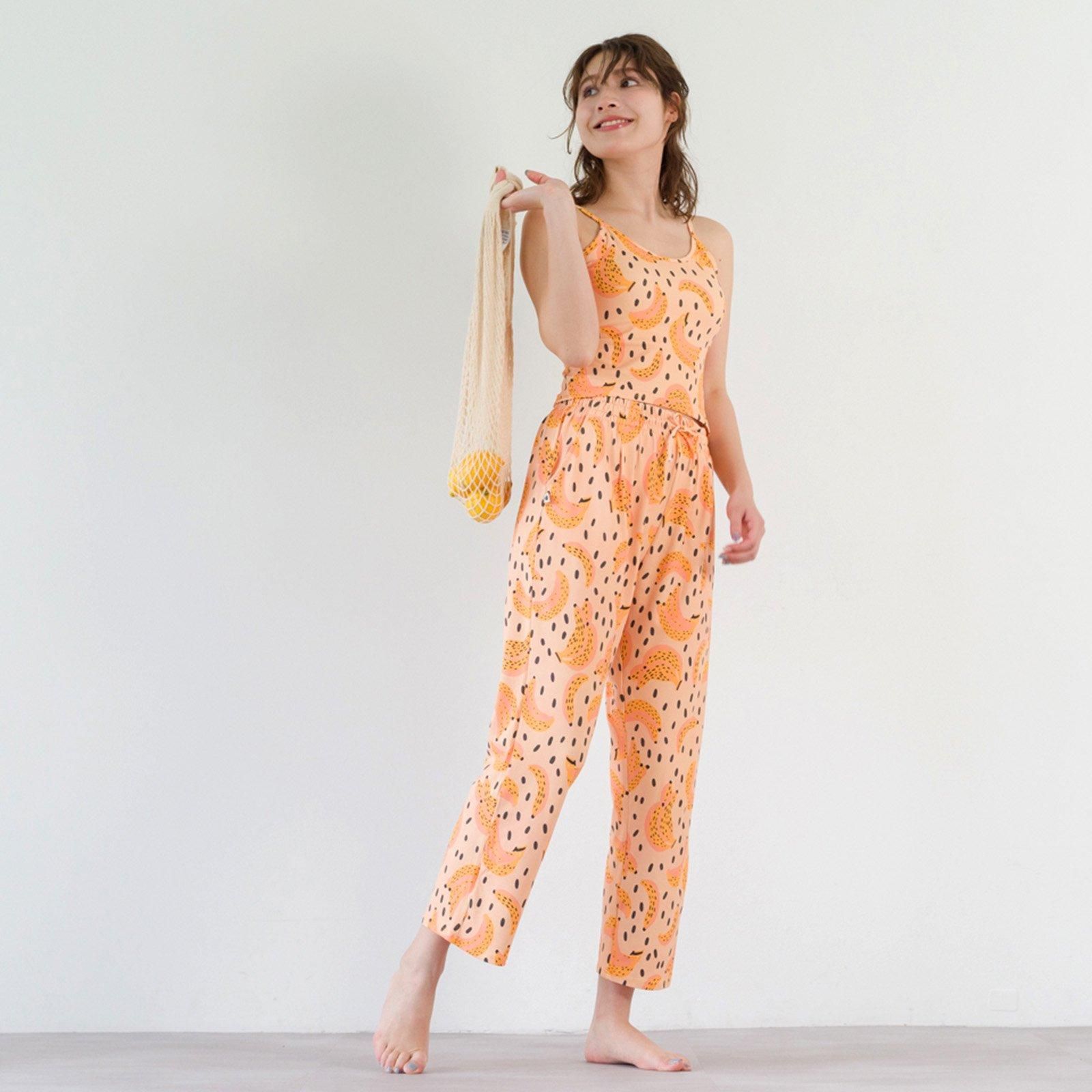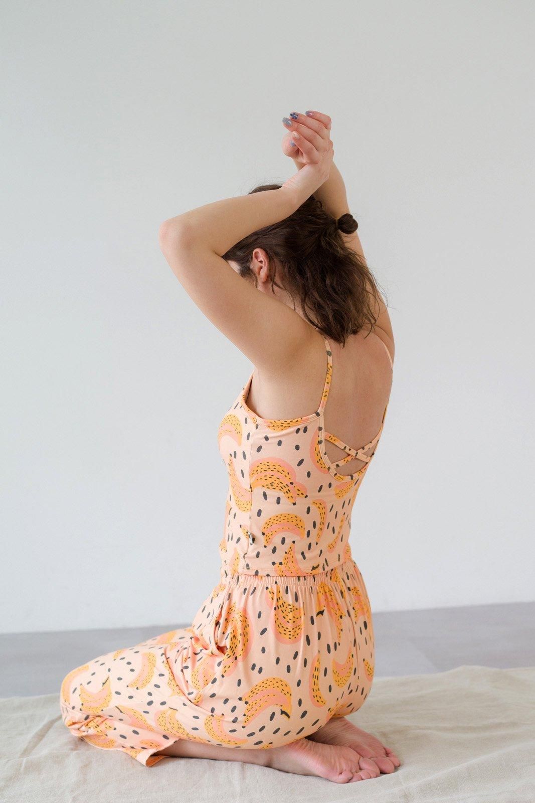 柔らかいイエローに、ゆるーいバナナ柄。落書きしたみたいな雰囲気がかわいらしくて、ご機嫌なプリント♪
