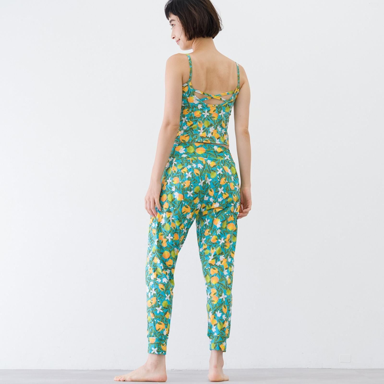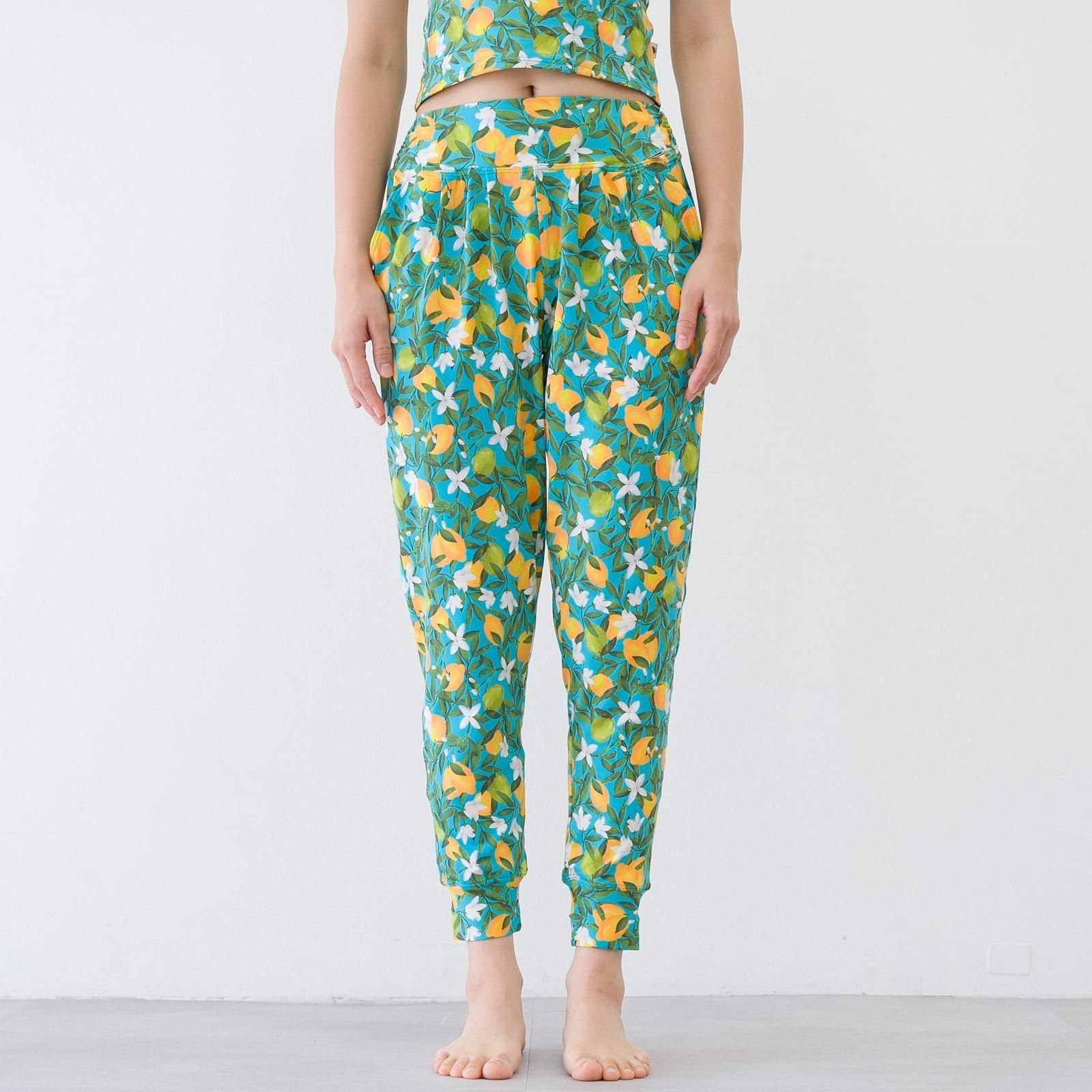 リラックス感がありつつスタイルアップを狙えるシルエット、足首周りはスッキリで動きやすいデザイン。よく伸縮するルーズフィットのヨガパンツです。