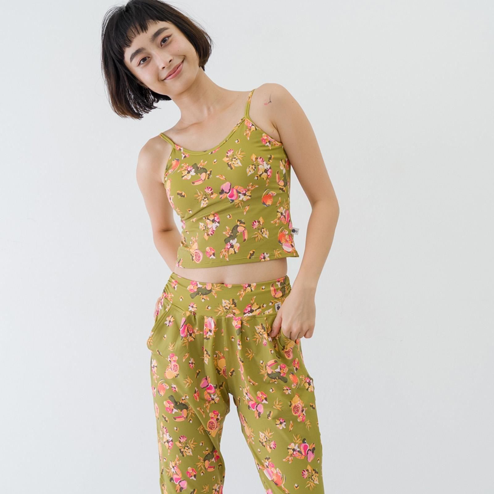 こっくりしたメロンカラーのベースに、オオハシやフルーツなどボタニカルな雰囲気がとってもかわいいです。