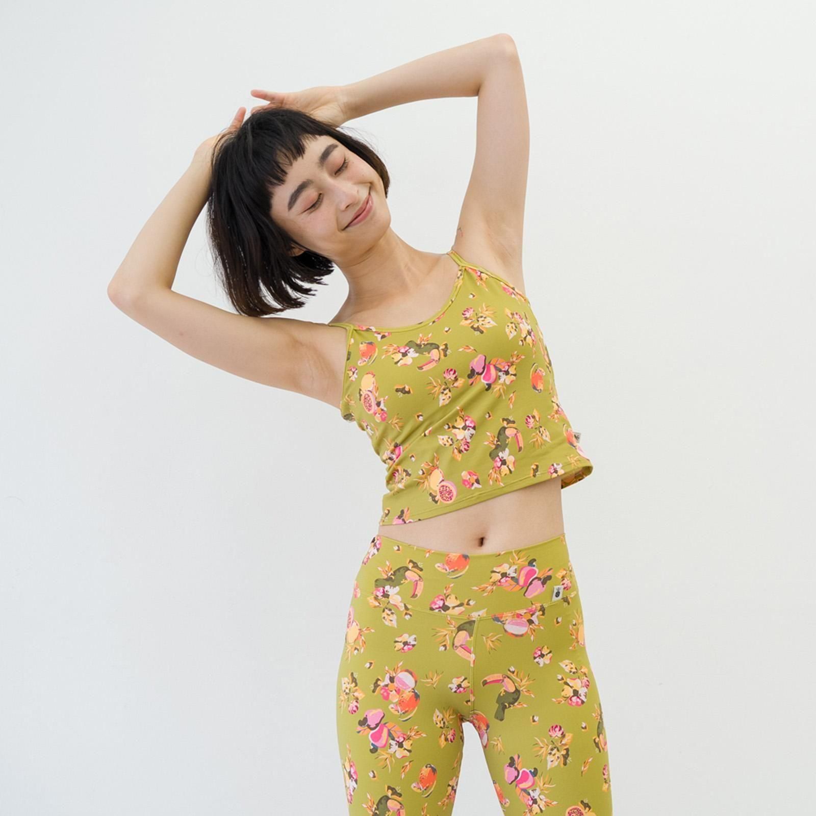 レギンスと相性が良いクロップド丈。締め付け感のない着心地が快適です。ミニマルなデザインで引き算してバランスの良いスタイルに仕上がっています。背中の開いたデザインは肩甲骨の動きを意識しやすいのも◎。 取り外し可能なパッド付きです。