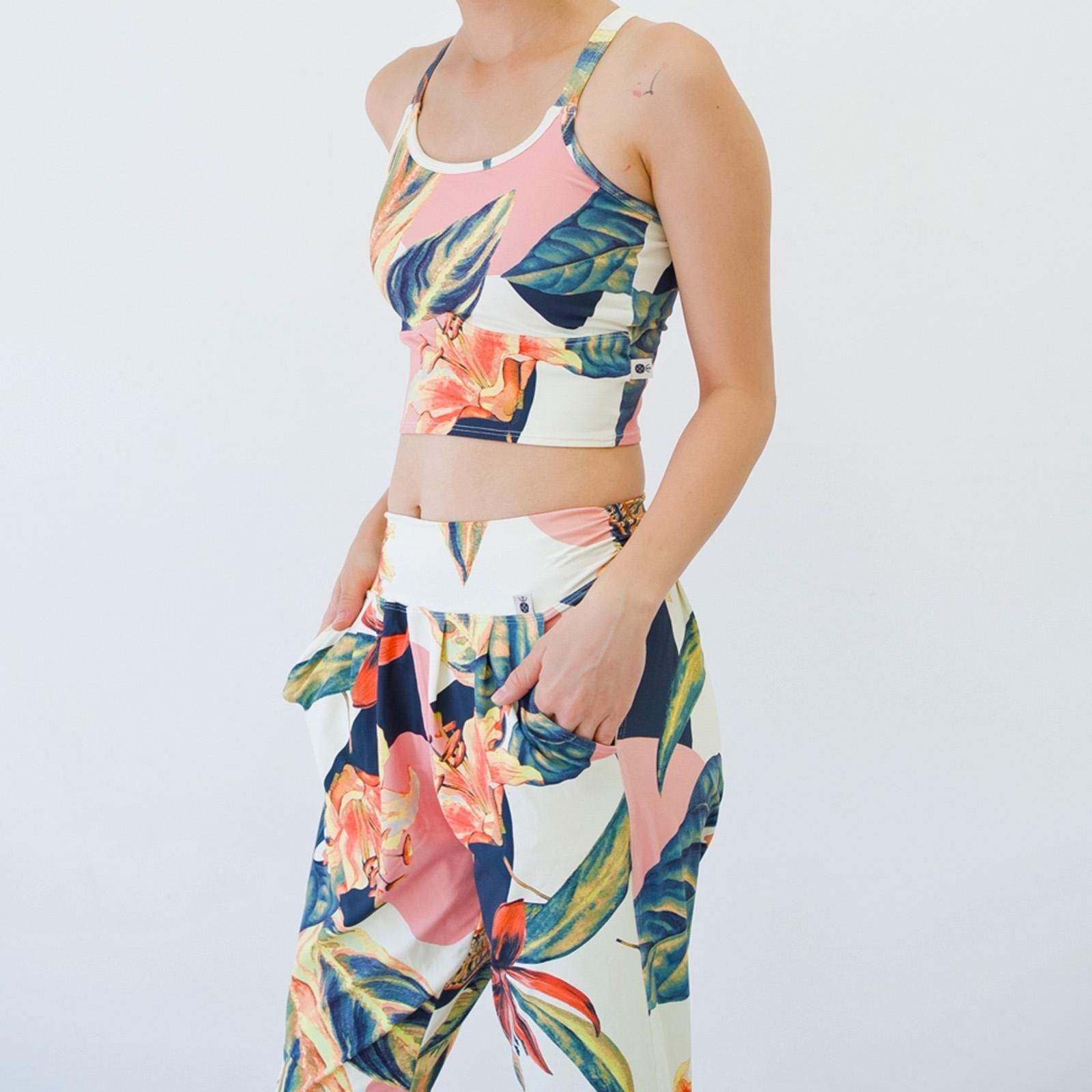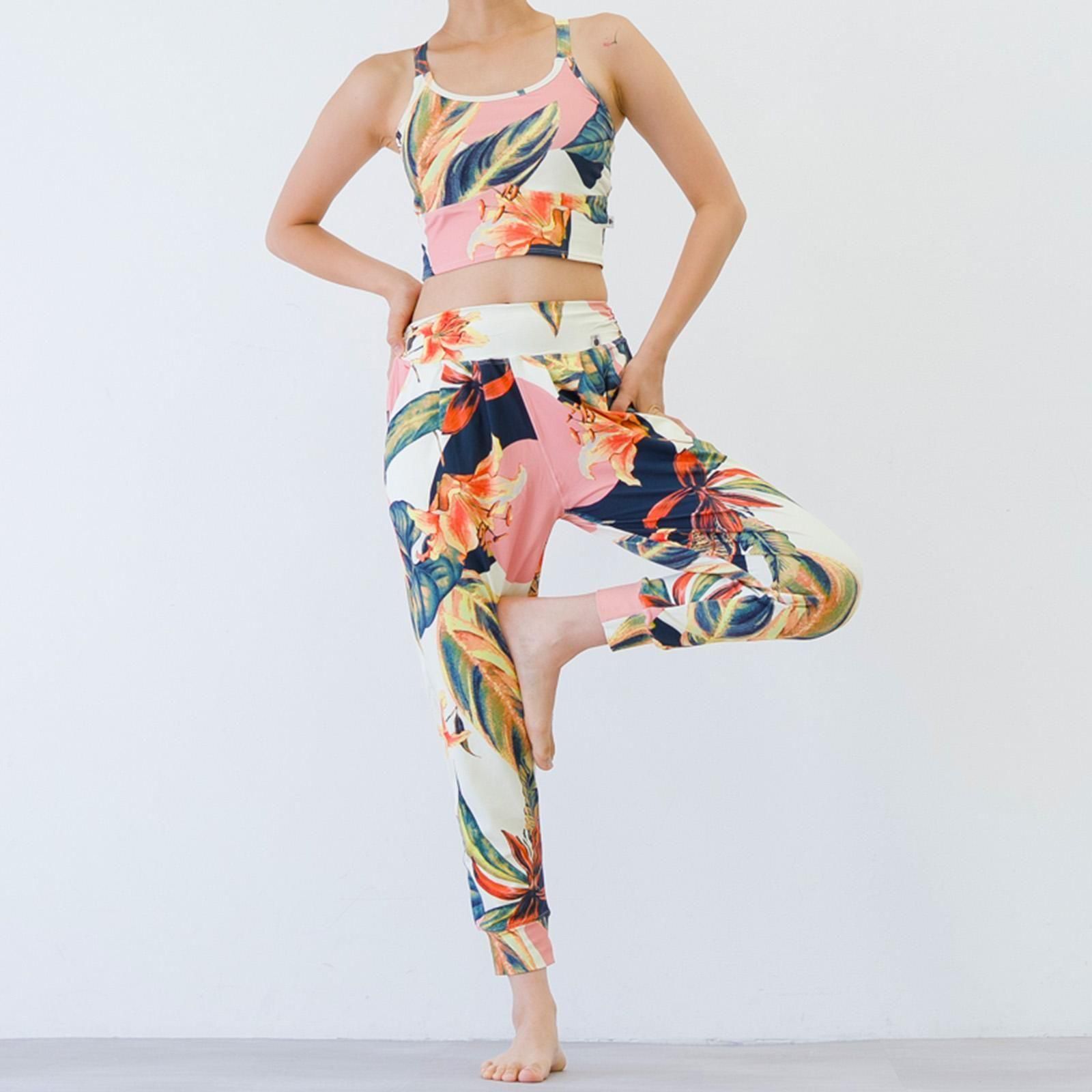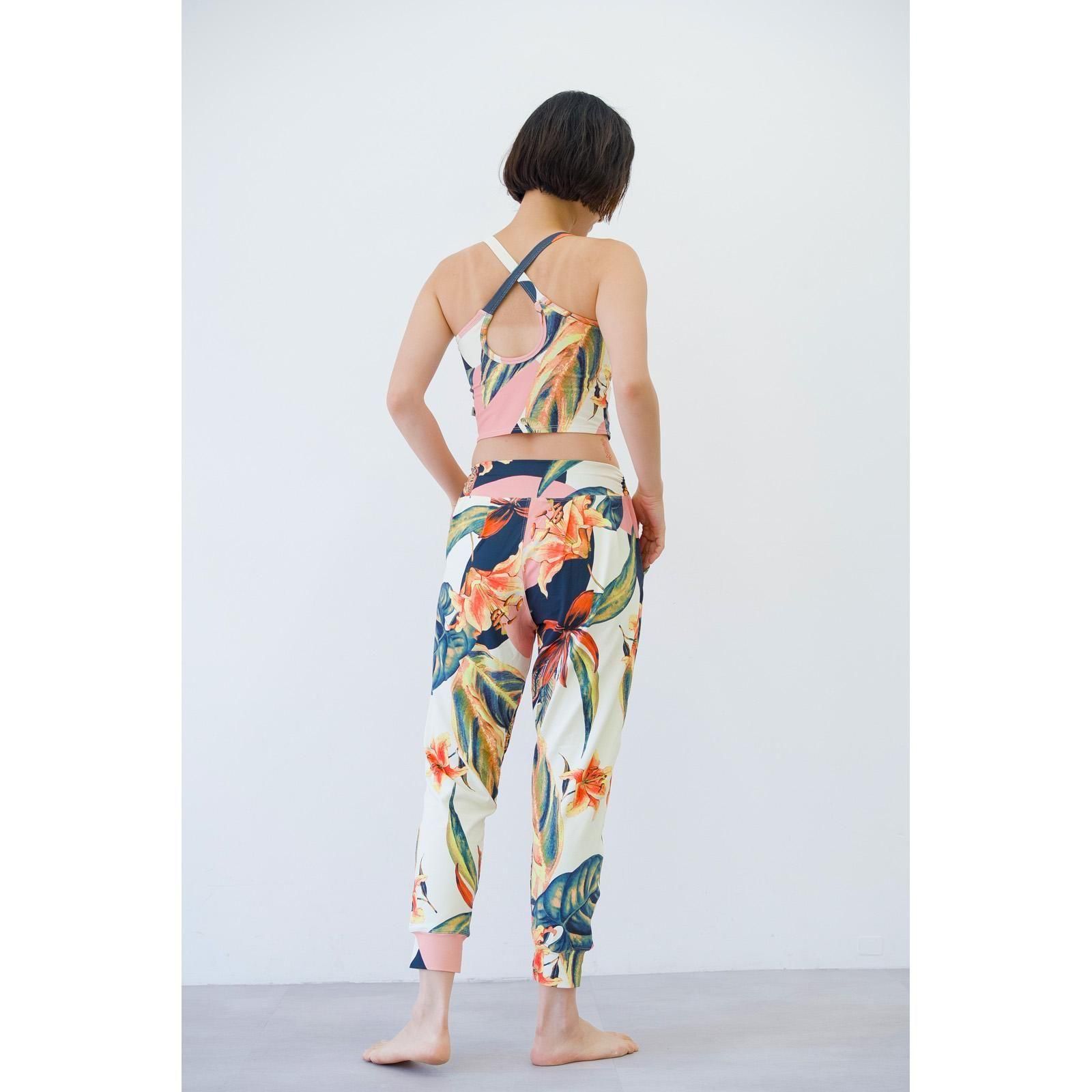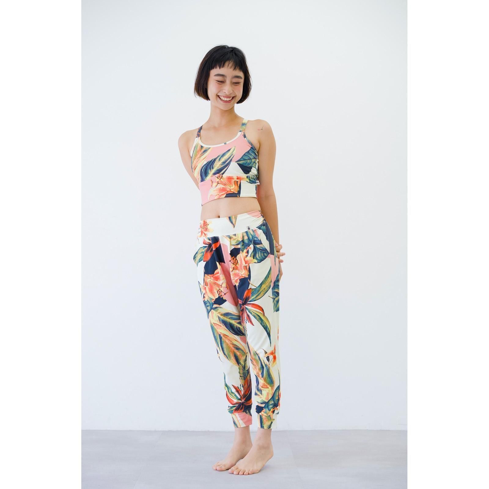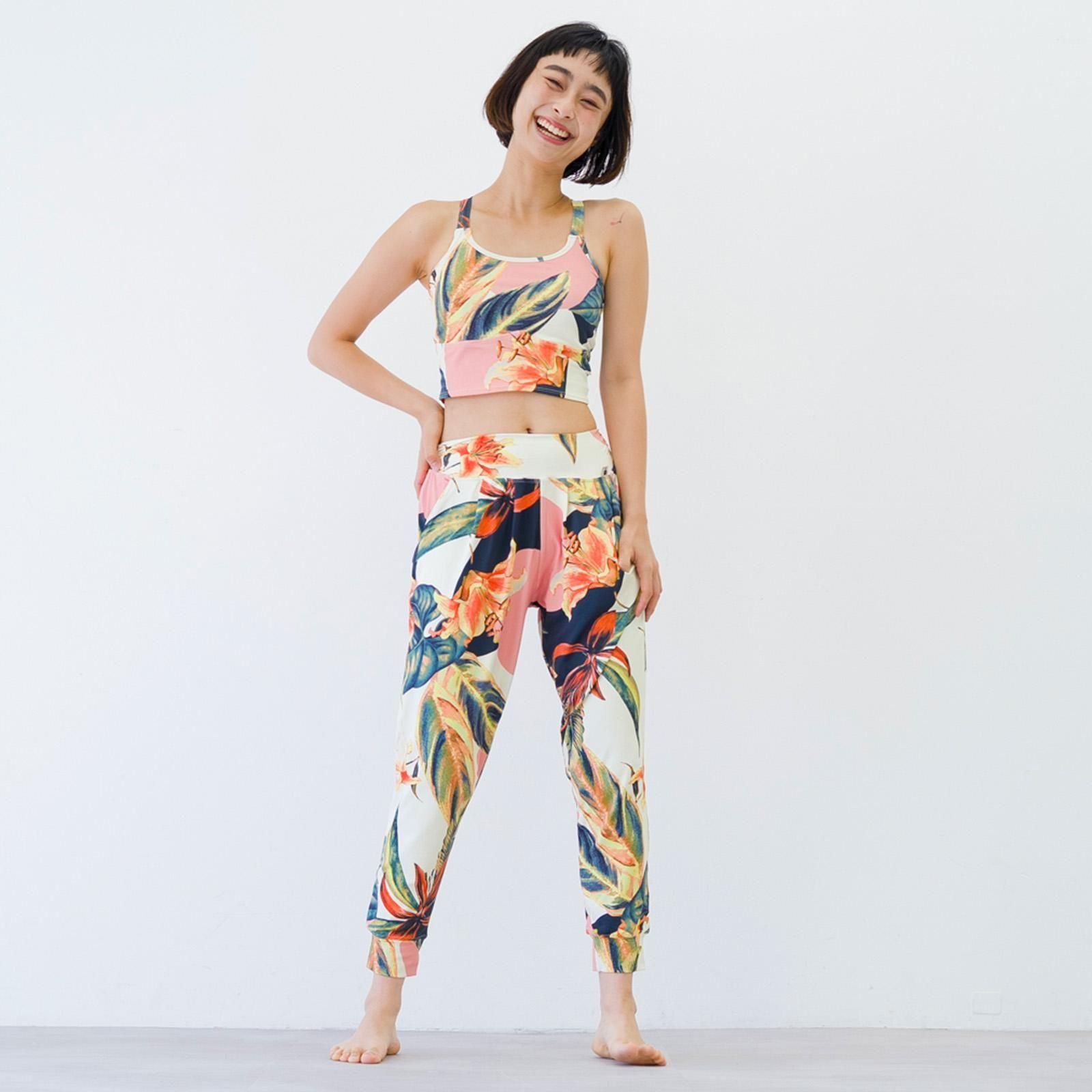 リラックス感がありつつスタイルアップを狙えるシルエット、足首周りはスッキリで動きやすいデザイン。よく伸縮するルーズフィットのヨガパンツです。