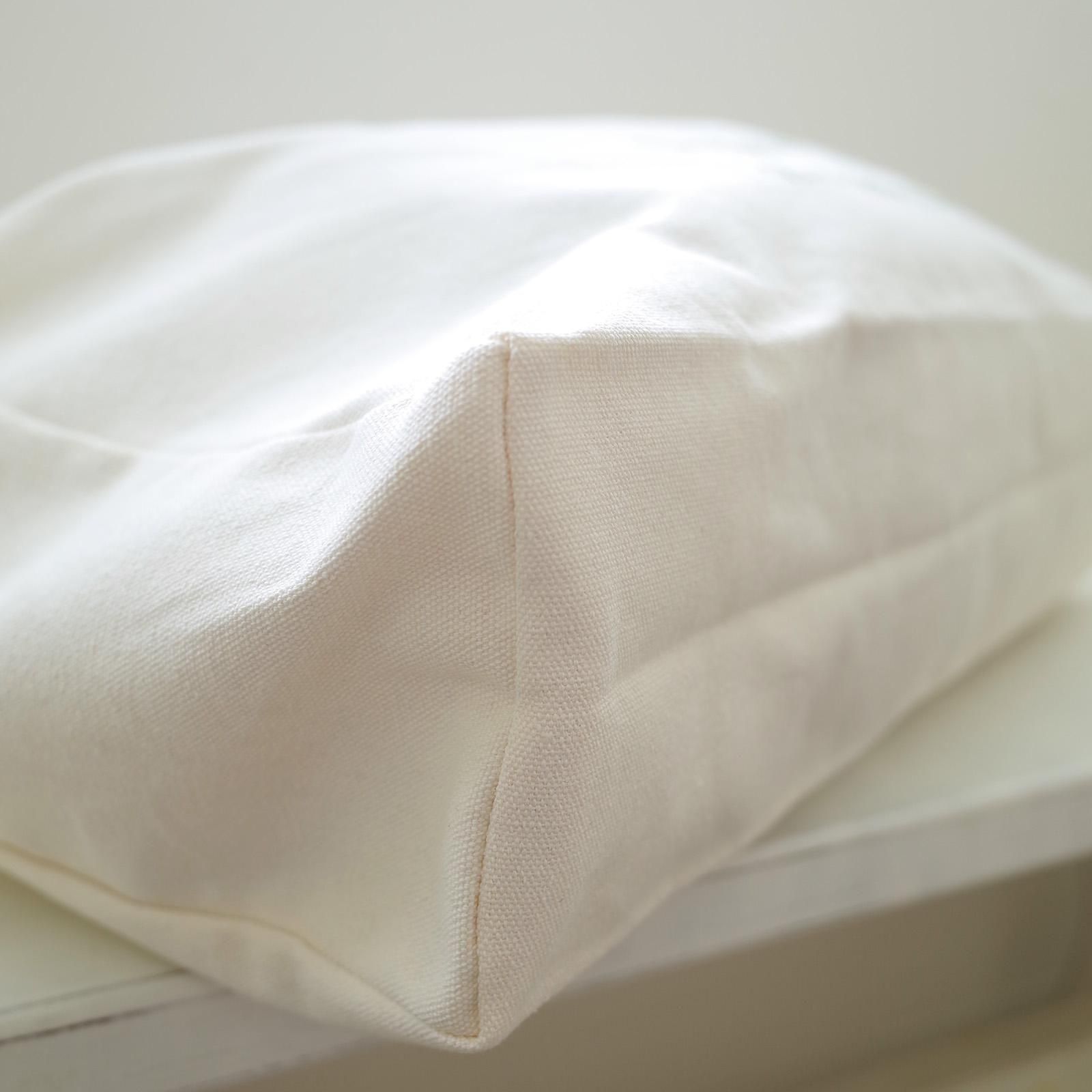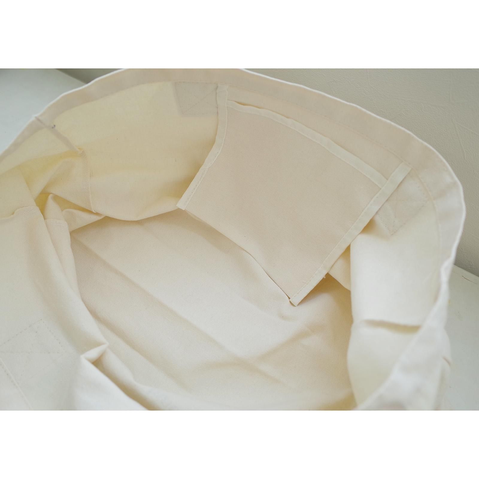 ヨガマットも入る大きさで、しっかりと厚みのあるナチュラルカラーのコットン素材です。