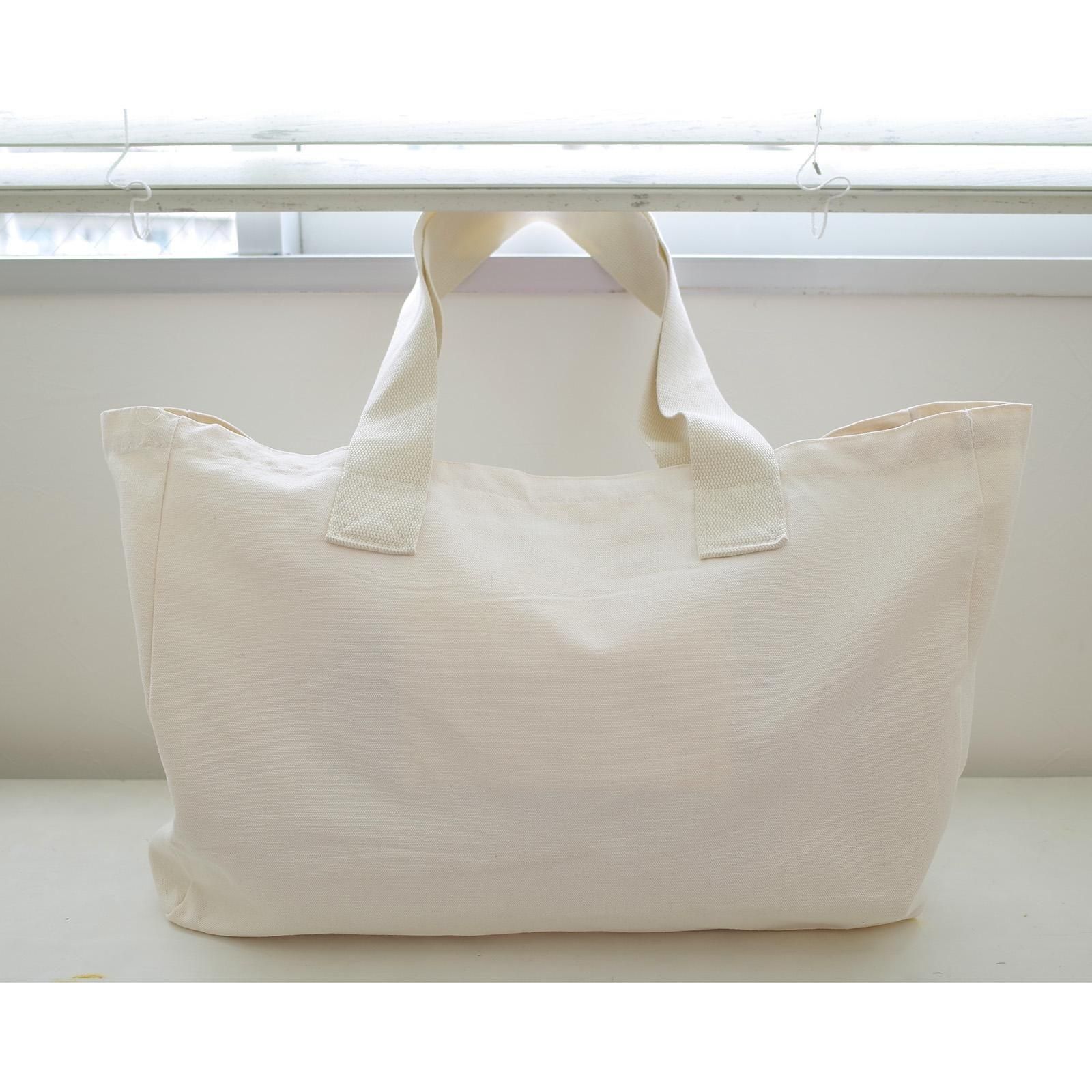 ヨガマットも入る大容量サイズなので荷物が多い時でも安心。しっかりと厚みのある丈夫な素材で長くお使いいただけます。肩掛けしやすく、荷物の出し入れがスムーズにできる長めのハンドル。内ポケット付き。