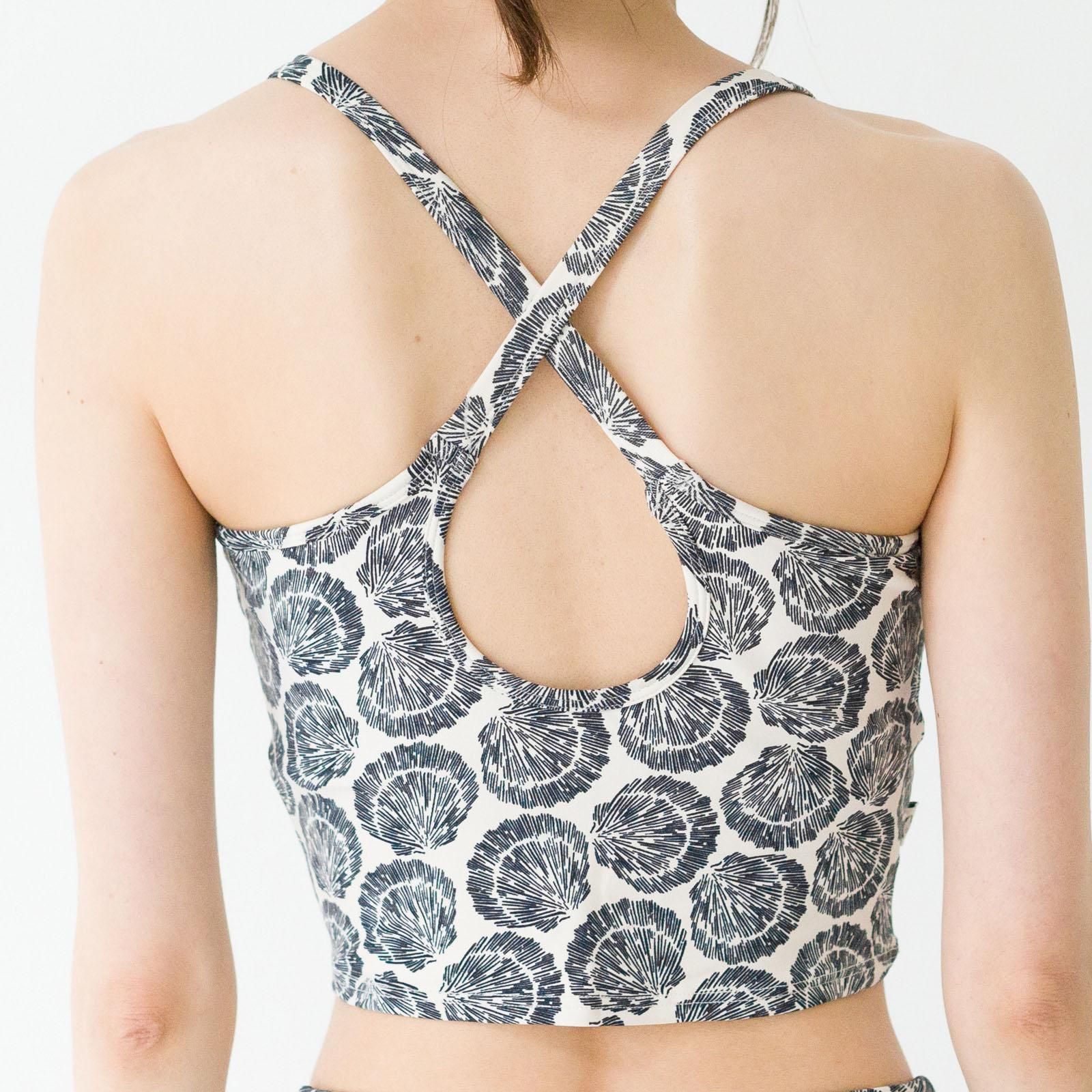 長めの着丈でお腹をちらりと見せたヘルシーな着こなしが楽しめるブラトップです。アンダーがしっかりフィットする内側の構造でお胸を支え、ずれにくいのでポーズに集中できます。