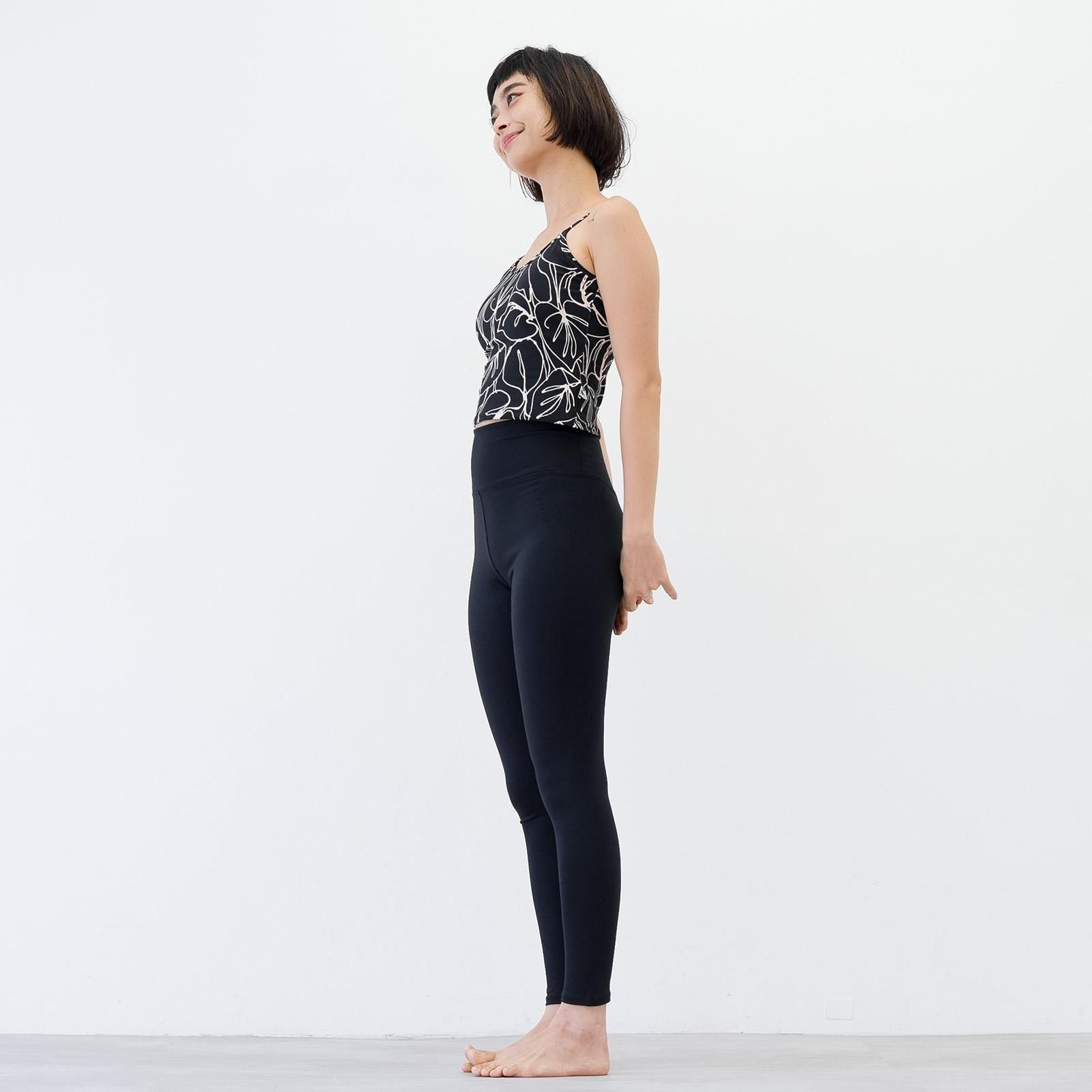 しっかりと着圧を感じられ、お腹や太もも周りを引き締めて見せてくれます。スタイルアップが叶うレギンス。