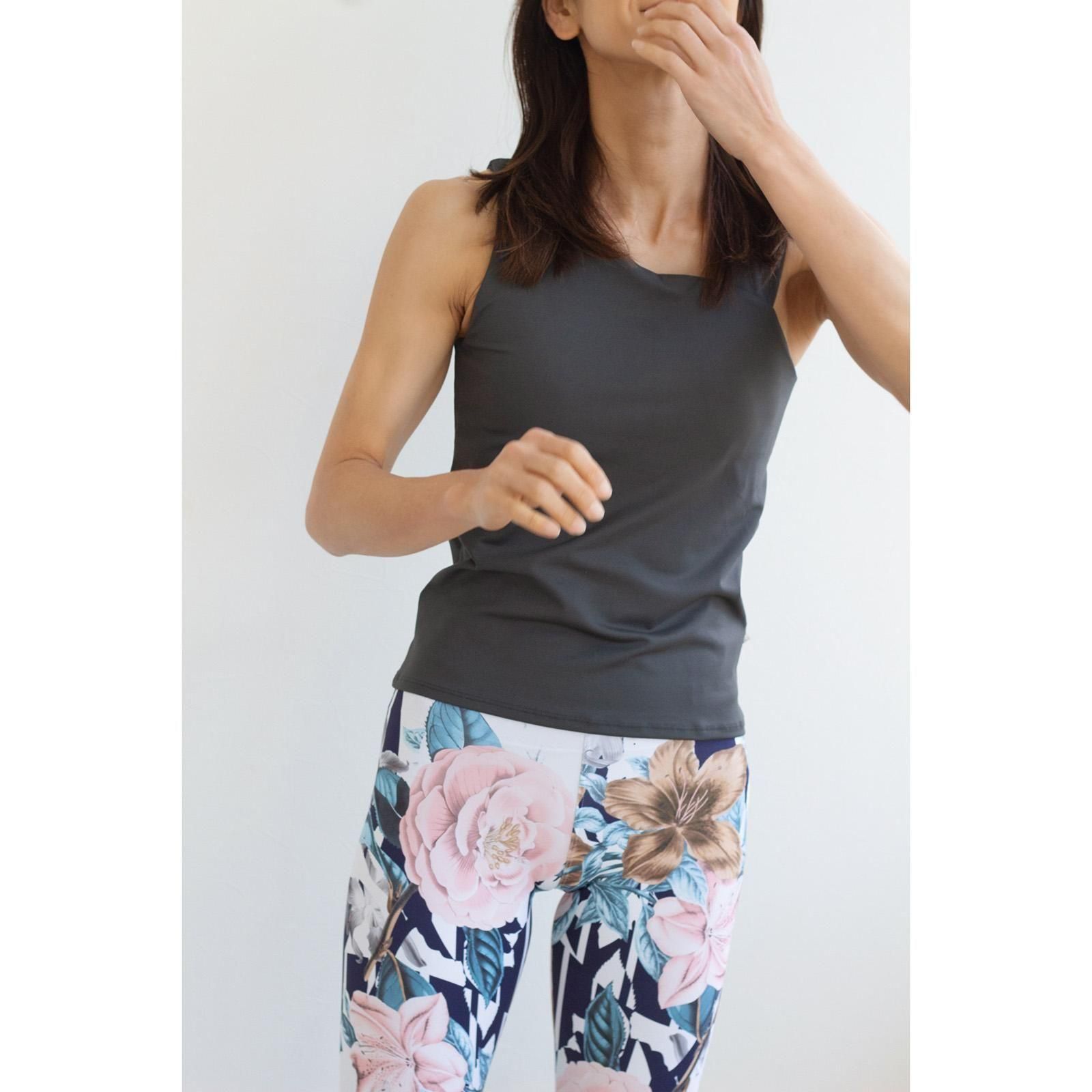 どちらを前にしても着られる2wayタンクトップ。取り外し可能なパットを希望のサイドに入れて、お好きな方を前にしてご着用ください。