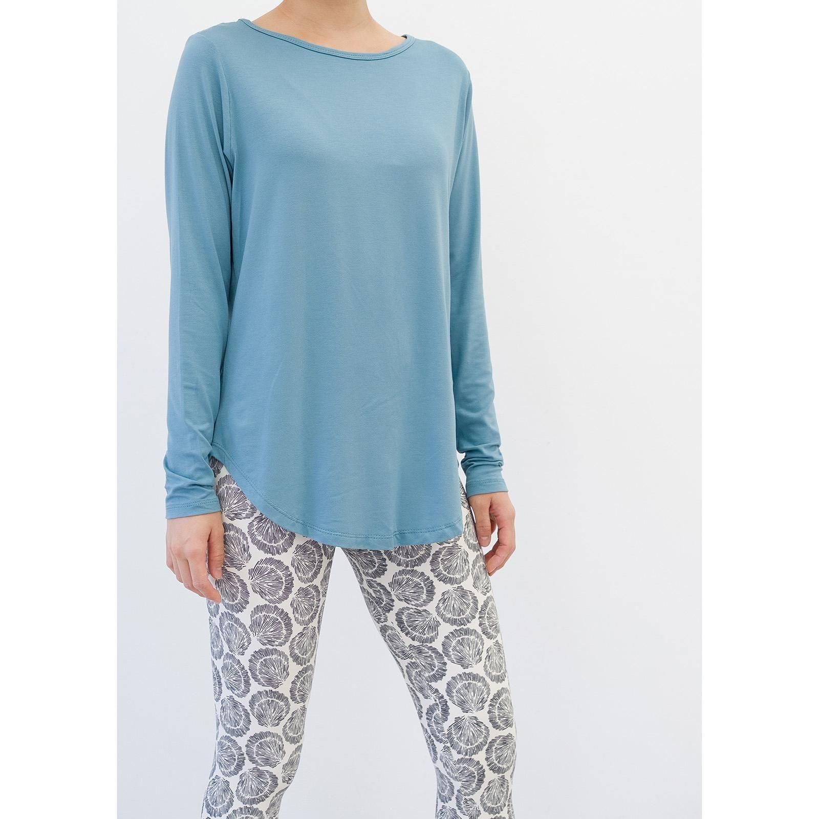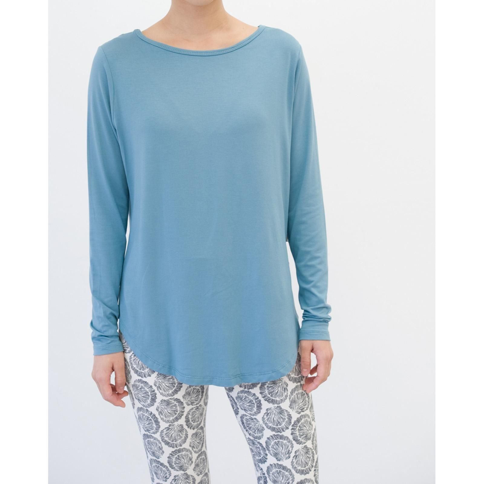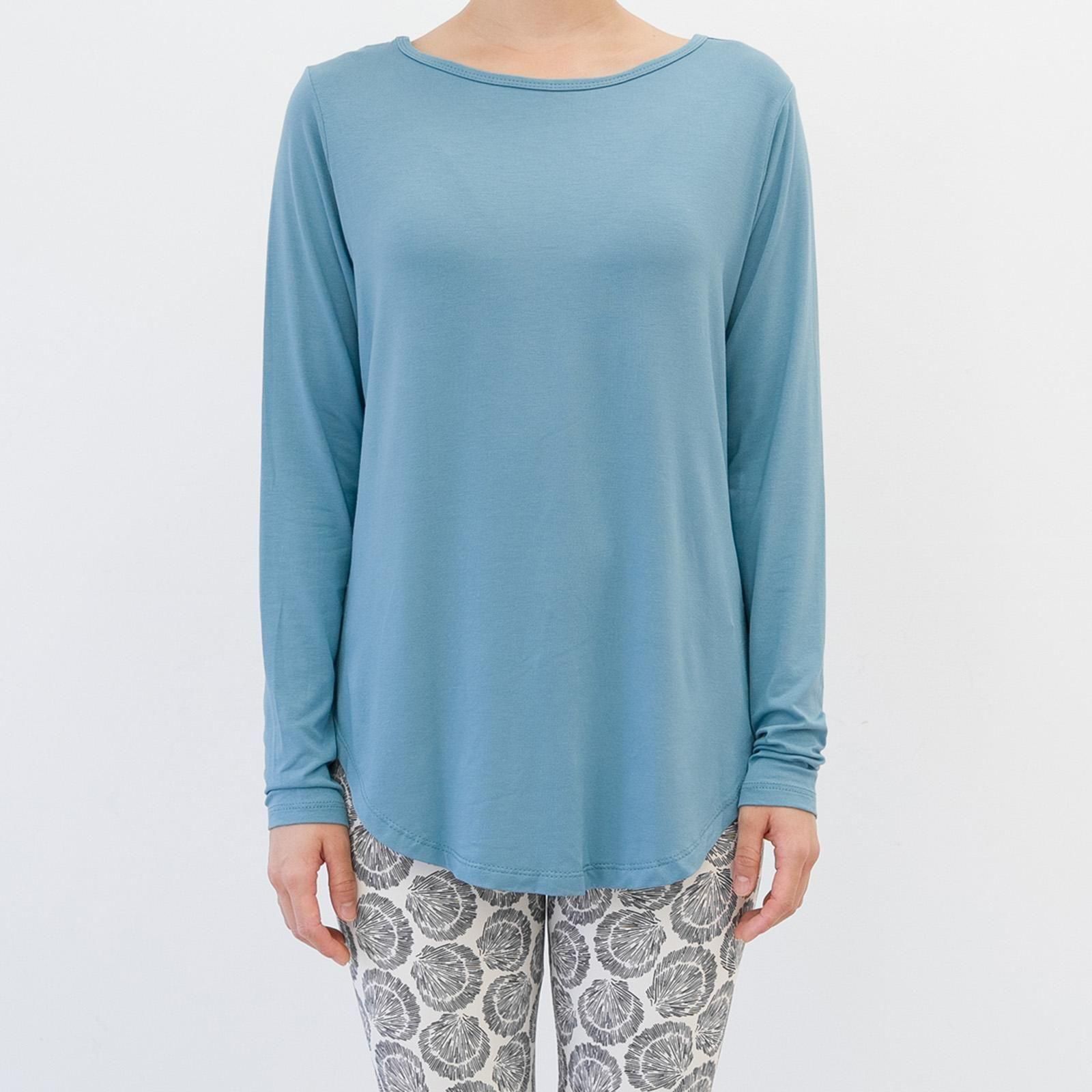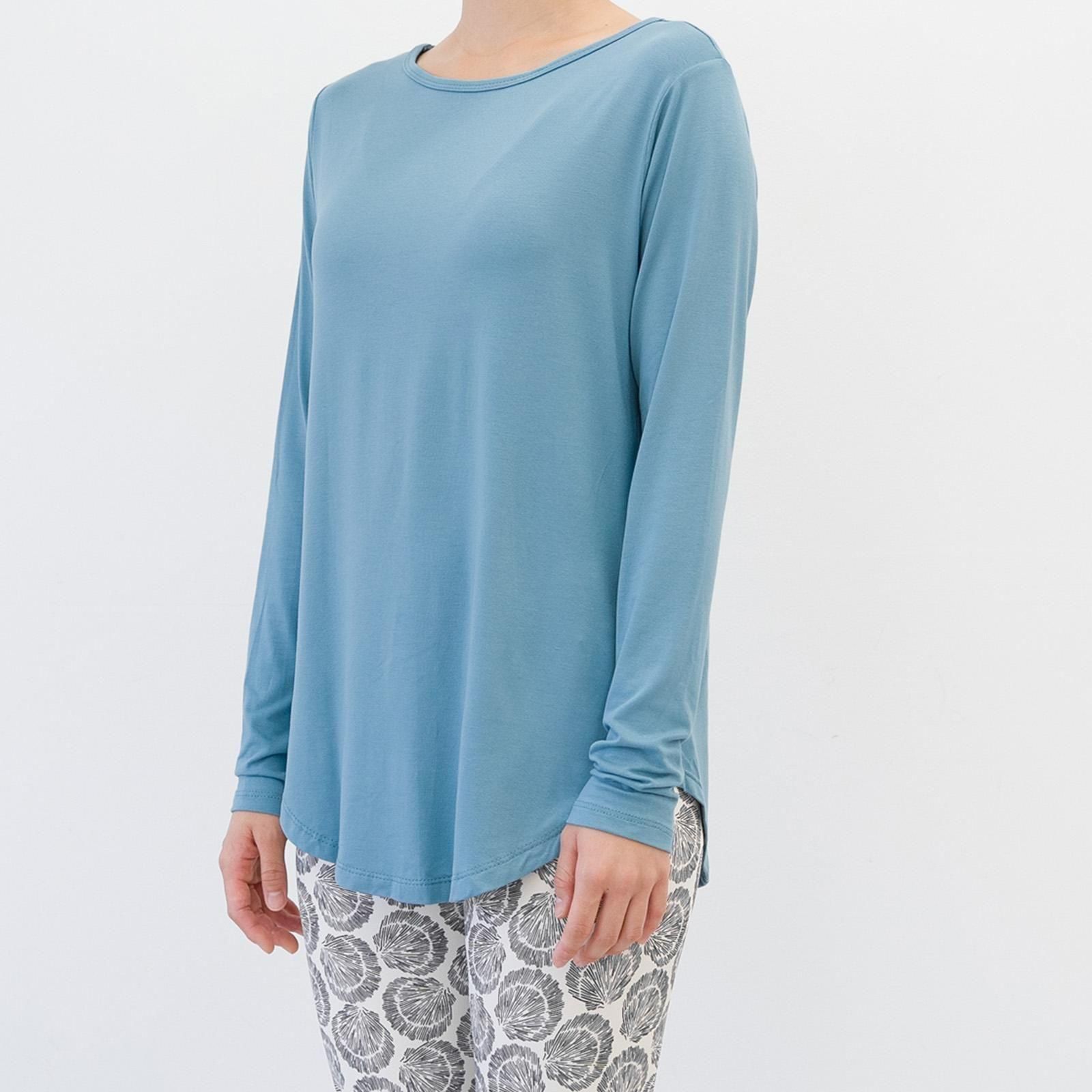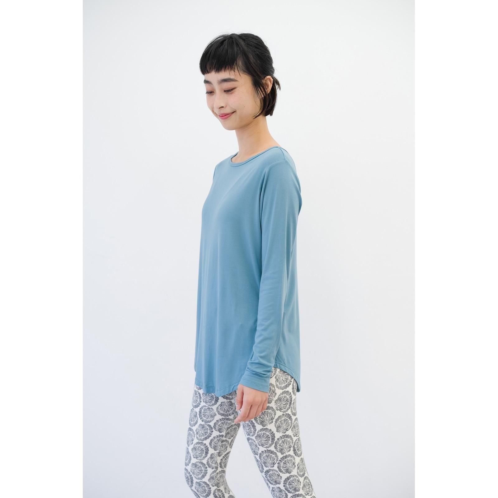すとんと落ち感のある素材、形がキレイなシンプル長袖Tシャツ。柔らかなレーヨン素材は肌触りがよく、保温性と保湿性に優れています。