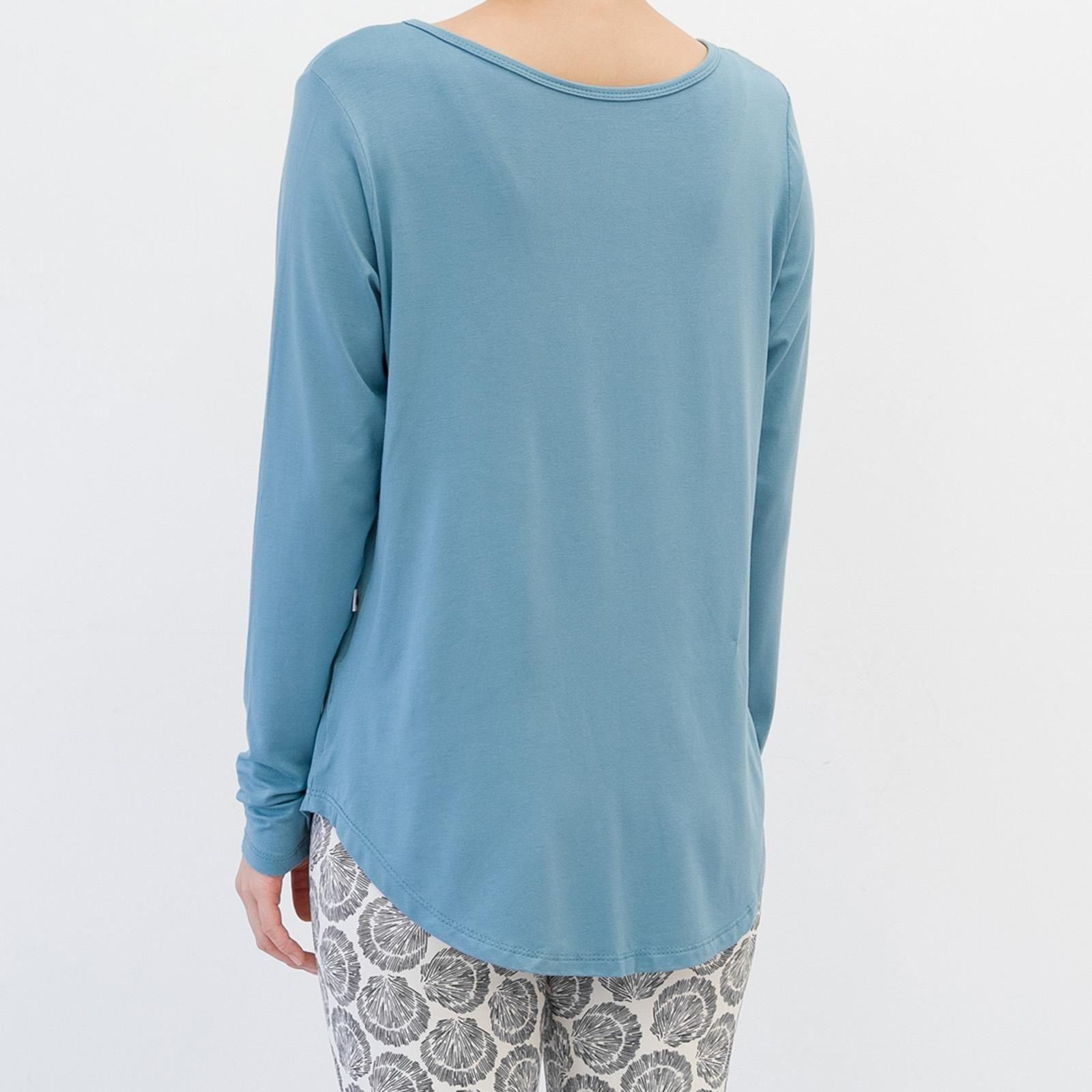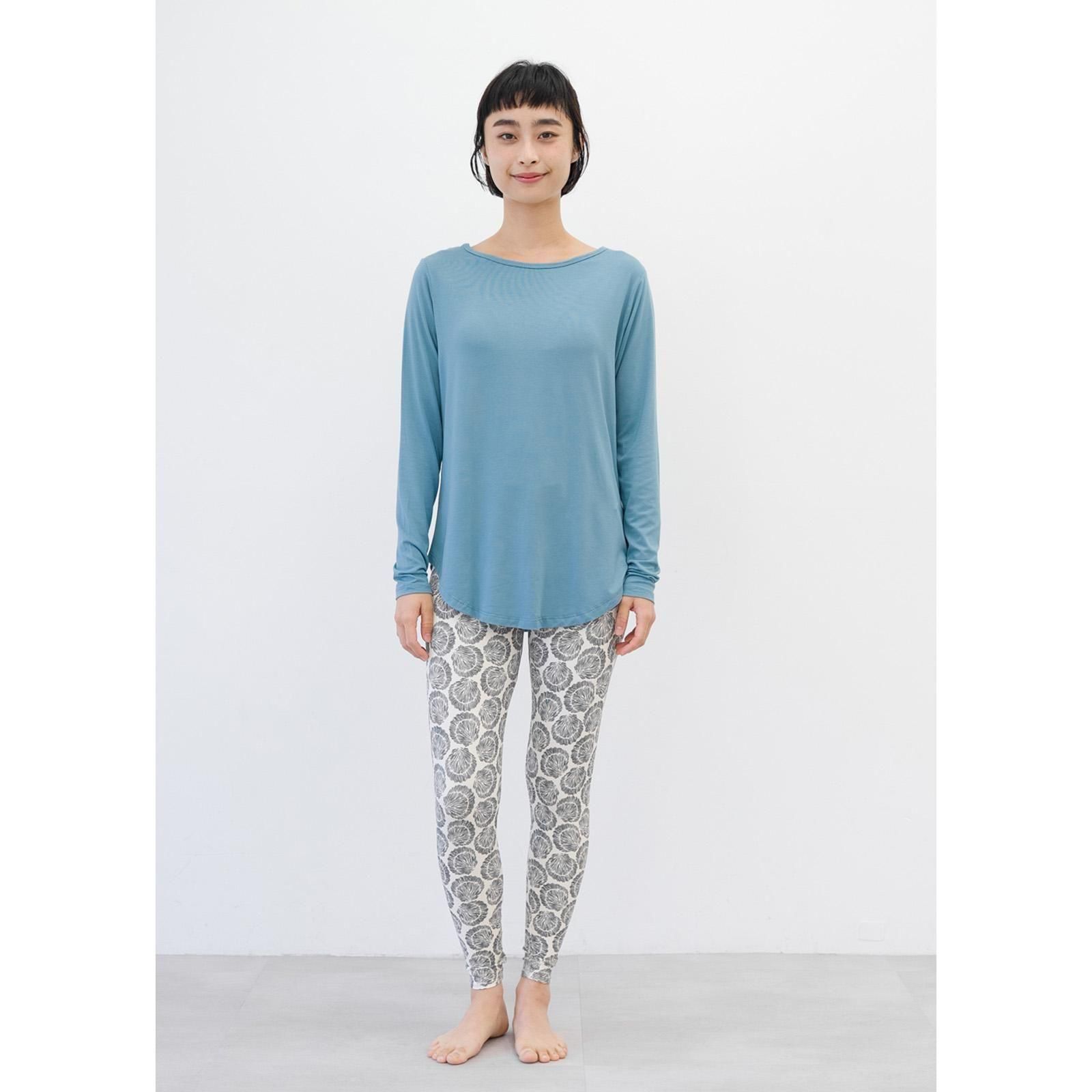 すとんと落ち感のある素材、とろみのある着心地がお肌に気持ちいい。形がキレイでどんなスタイルとも合わせやすい、シンプル長袖Tシャツです。お尻が隠れる丈感。腕周りはフィットする作りで、伸縮性が高いので動きやすいです。柔らかなレーヨン素材は肌触りがよく、保温性と保湿性に優れています。パッドはついておりませんのでインナーにブラ等をご着用ください。