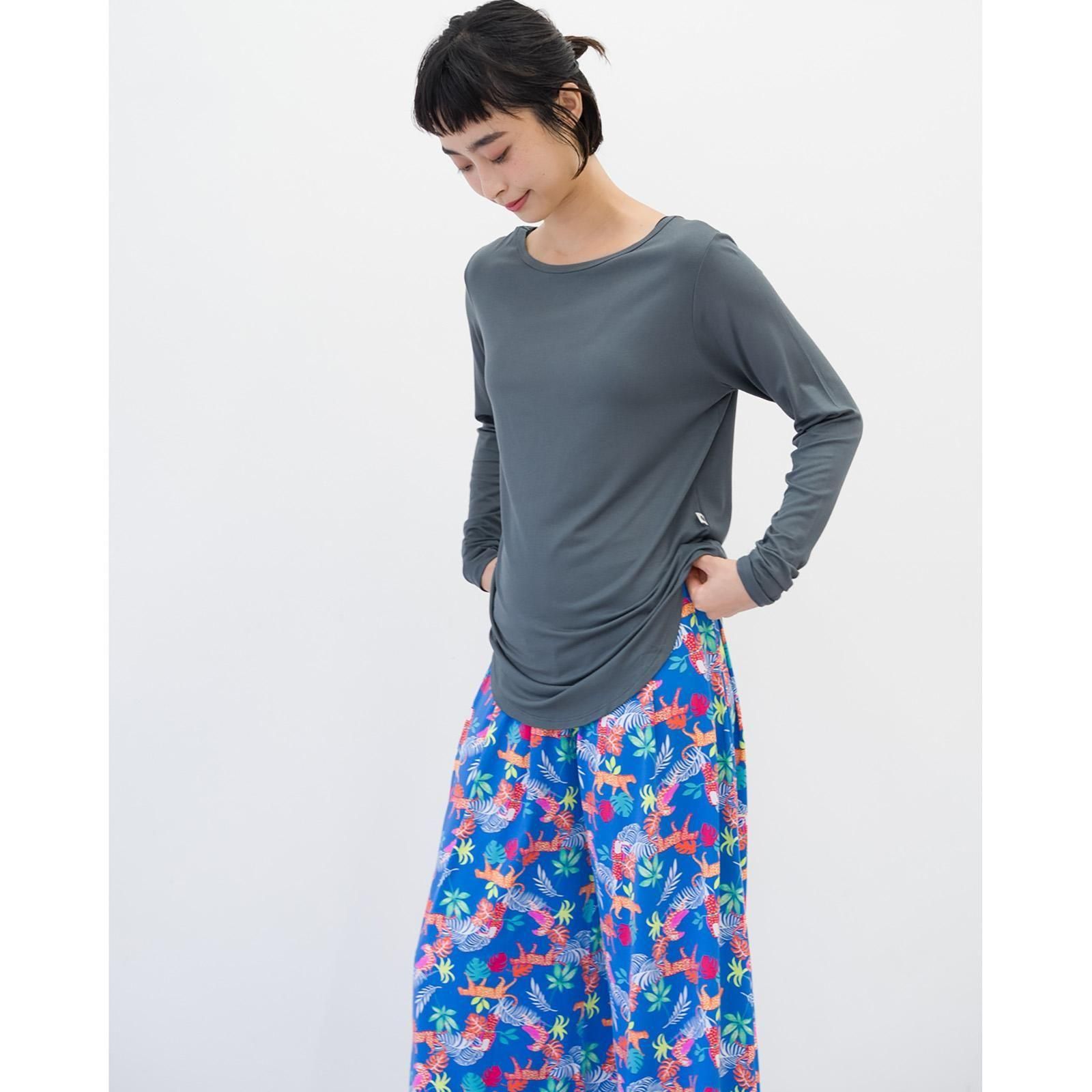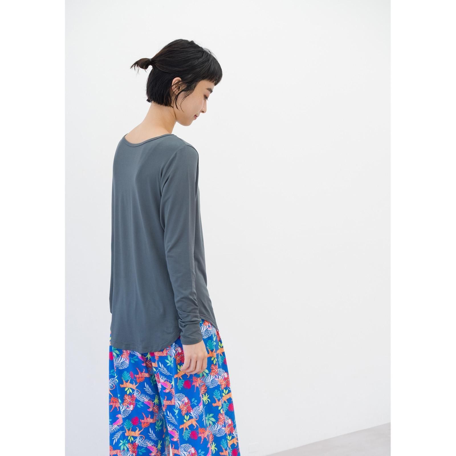 すとんと落ち感のある素材、形がキレイなシンプル長袖Tシャツ。柔らかなレーヨン素材は肌触りがよく、保温性と保湿性に優れています。